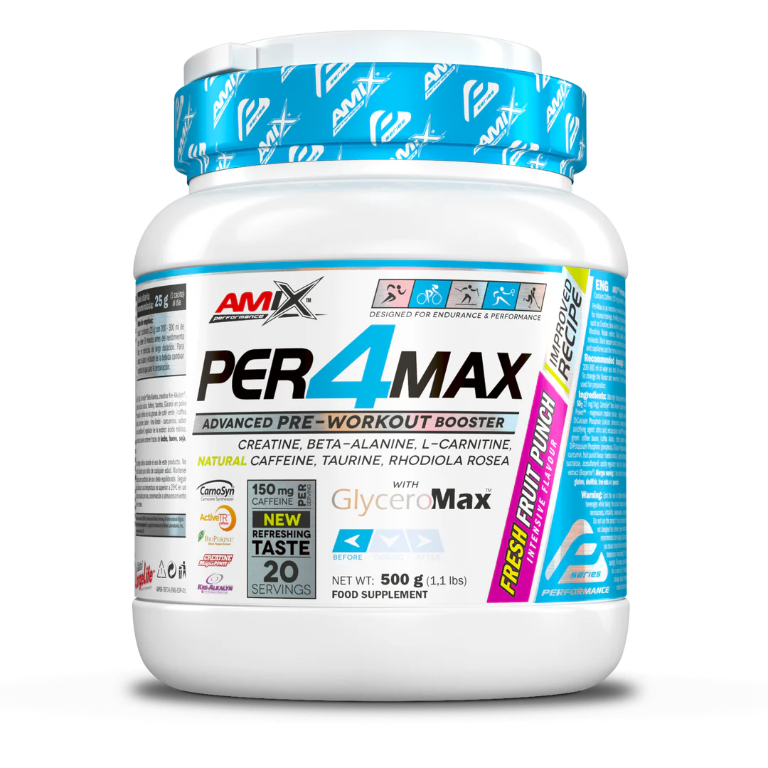 Almidón de maíz con un alto peso molecular (SO2 17 mg/1kg), CarnoSyn® beta alanina, creatina Kre-Alkalyn®, Creatina Magna Power™ – quelato de creatina de magnesio (bisglicinato), tartrato de L-carnitina, taurina, fosfato dicálcico (calcio, fósforo), glicerol en polvo 65% GlyceroMax™, regulador de la acidez: ácido cítrico; cafeína natural encapsulada ActiveTR™ (cafeína de granos de café verde /Coffea arabica, Coffea canephora/, proteína vegetal de guisante), fosfato dipotásico (fósforo), fosfato disódico (sodio), zumo de remolacha (sabor fruit punch), colorante: curcumina (sabor lima-limón); aroma, extracto de Rhodiola rosea, edulcorantes: sucralosa, acesulfamo-K; regulador de la acidez: ácido málico, bicarbonato de sodio; extracto de pimienta negra (Bioperine®).