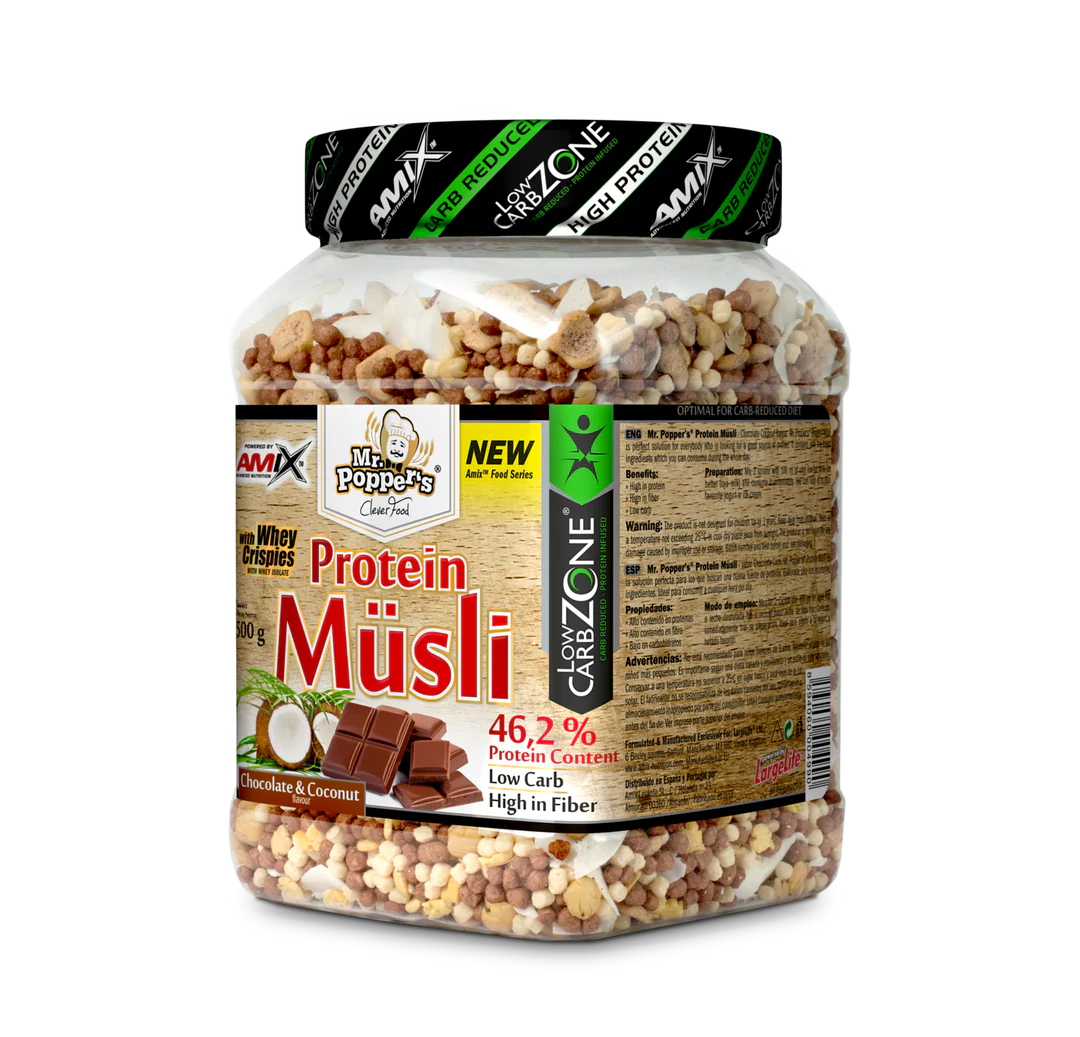 Mr. Popper’s Protein Müsli es la solución perfecta para aquellos que buscan una buena fuente de proteína. Elaborado sólo con excelentes ingredientes, este muesli de sabor plátano-chocolate es ideal para consumir a cualquier hora del día.