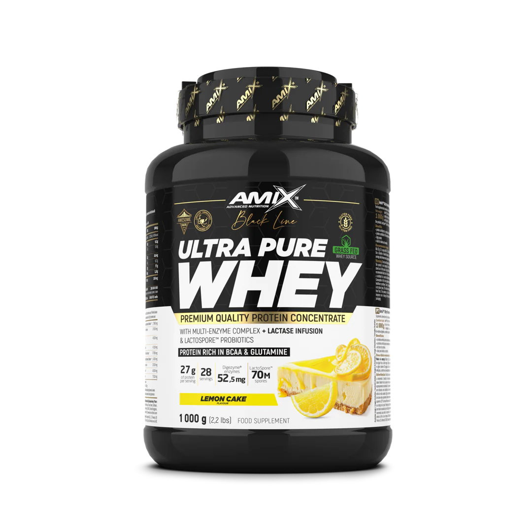 Amix™ Black Ultra Whey Protein es un complemento alimenticio en polvo a base de concentrado de proteína de suero de leche de alta calidad. Su fórmula incluye un complejo multienzimático (DigeZyme®), el probiótico Bacillus coagulans (LactoSpore™) y la enzima lactasa, ingredientes que forman parte de una formulación avanzada para quienes siguen una dieta activa y equilibrada.